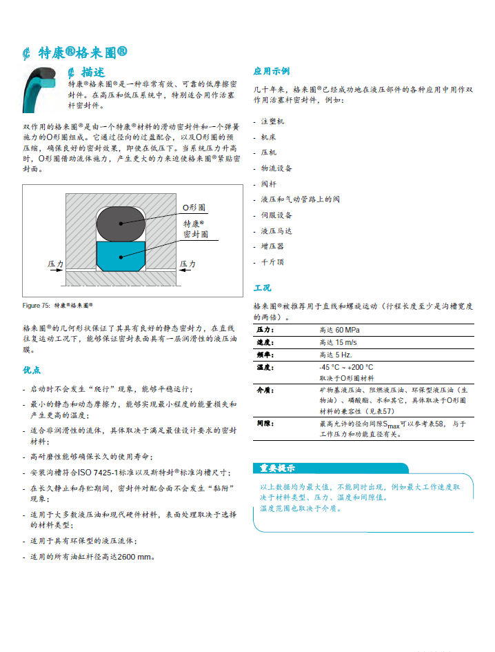 特康®格来圈®是一种非常有效、可靠的低摩擦密封件。在高压和低压系统中,特别适合用作活塞杆密封件。